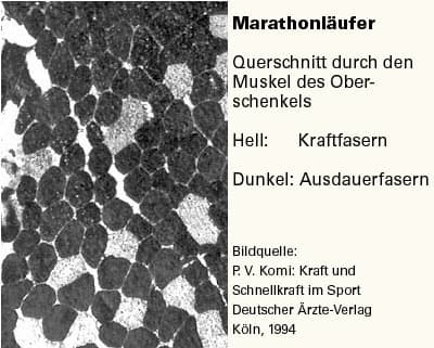 Gelegentlich produziert die Erbanlage aber Extreme, an denen man den Unterschied zwischen Ausdauer- und Kraftmuskel spontan sehen kann.