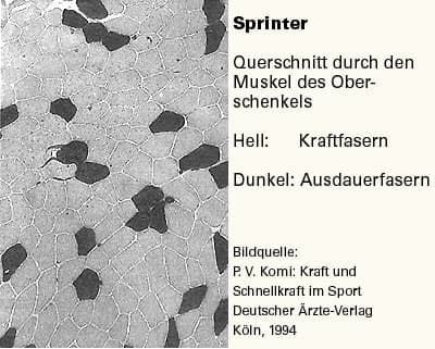 Wer ist der Schnellste? Der mit den „dicksten“ Oberschenkeln: Kraftfasern entwickeln eine große Muskelmasse, Kraftfasern zucken am schnellsten (hohe Schnellkraft).