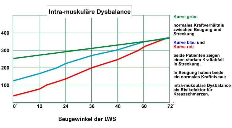 Eine Abweichung der Kraftkurven-Form von der gesunden Kraftkurven-Form wird intramuskuläre Dysbalance genannt.