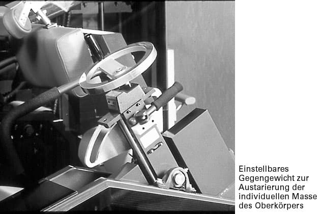 Wenn also wissenschaftlich korrekte Normal-Kraft-Kurven entwickelt werden sollen und wenn die Rückenstrecker biomechanisch in jeder LWS-Position korrekte Trainingswiderstände erhalten sollen, muss der Einfluss der Schwerkraft der individuell unterschiedlichen Oberkörpermasse gerätetechnisch ausgeglichen werden.
