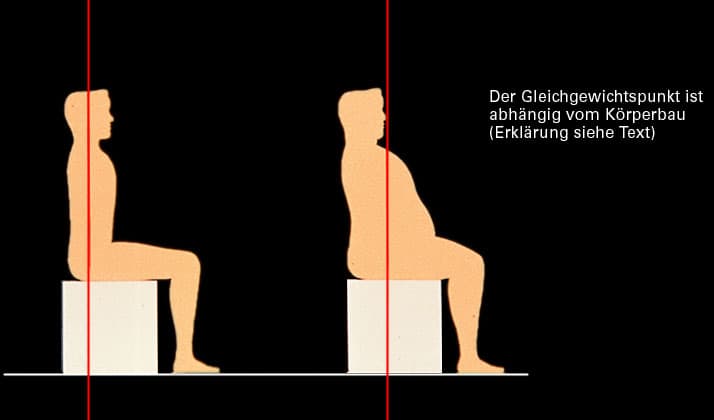 Unter dem Einfluss der Schwerkraft erscheinen bei der Kraftmessung massig gebaute Personen in Hohlkreuzposition stärker als schlanke und in vorgebeugter Position schwächer als schlanke.