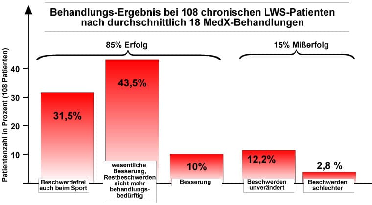 Nach EBM - Kriterien ist die kurzfristige Wirksamkeit der MedX-Therapie nachgewiesen. Zur Beurteilung der langfristigen Wirksamkeit liegen noch nicht genügend Studien vor.