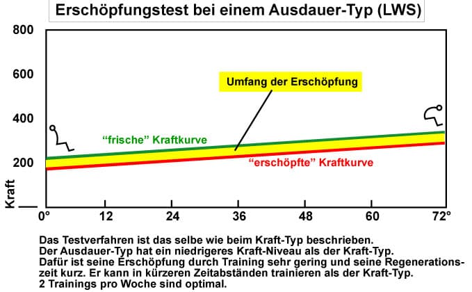 An der HWS erübrigt sich die Testung der Erschöpfungsreaktion. Bisher wurde kein einziger Kraft-Typ an der HWS gefunden. Die HWS-Strecker sind primär Ausdauermuskeln.