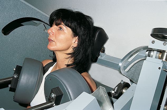 Die Isolation der HWS-Streckmuskeln setzt also voraus, dass die Streckmuskulatur der BWS gerätetechnisch ausgeschaltet wird. Dies gelingt durch die Fixierung des Oberkörpers. Nur auf diese Weise kann die Kraft der HWS-Streck-muskeln isoliert diagnostiziert und trainiert werden.