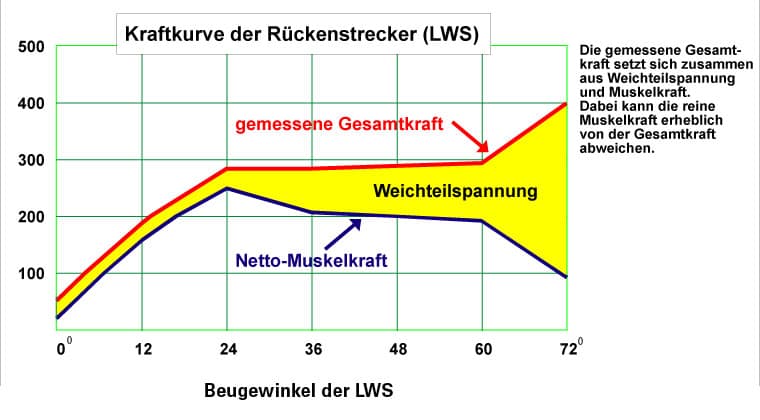 Die individuell unterschiedliche Masse des Oberkörpers beeinflusst die Kraft der Rückenstrecker: