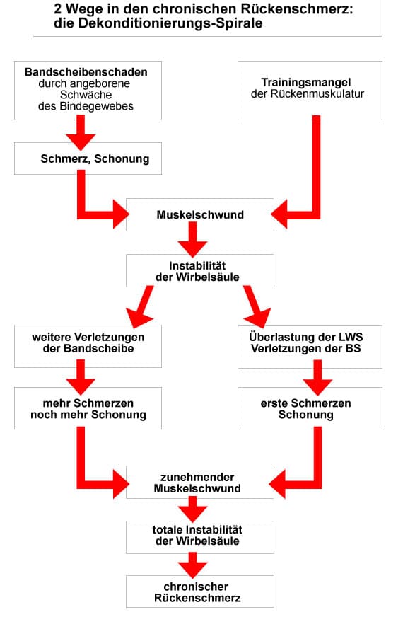 Die Instabilität der Wirbelsäule mit Zerrungen des Faserringes der Bandscheibe ist das zentrale Problem